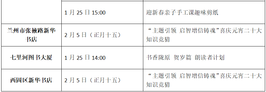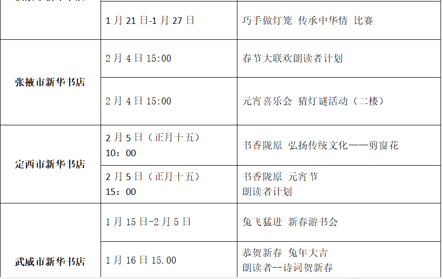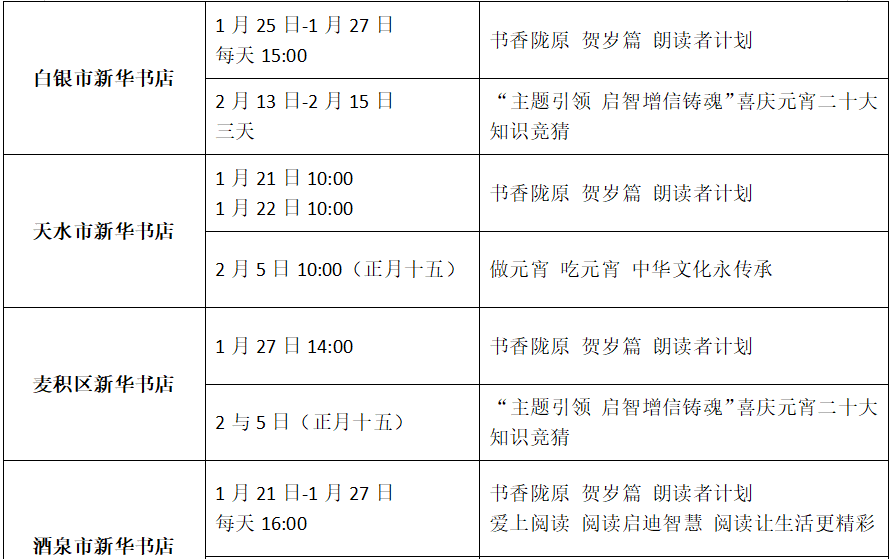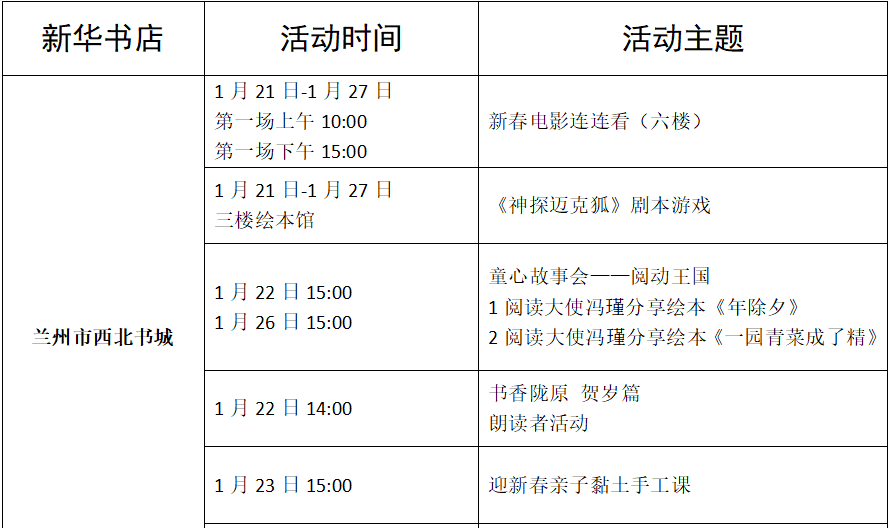 收藏!甘肅省各地新華書店春節(jié)期間活動(dòng)來(lái)了(附表)