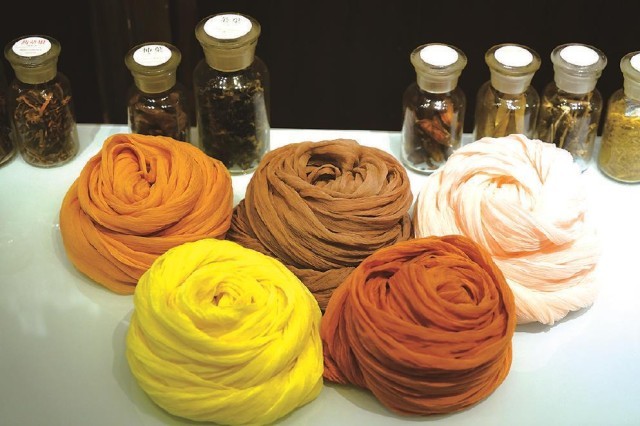 而與大多數(shù)傳統(tǒng)色彩研究者不同的是,曾啟雄極為重視實(shí)驗(yàn)考證。作為一位技藝精湛的染色家,其論著里介紹傳統(tǒng)染色的文本內(nèi)容及圖片,都是他親歷親為、反復(fù)實(shí)驗(yàn)后的成果,這也是該書最為精彩之處。在染色實(shí)驗(yàn)過程中,除了復(fù)原了傳統(tǒng)顏色的本來面貌外,作者還做出如下貢獻(xiàn):首先,通過大量實(shí)驗(yàn)印證了古籍記載的真?zhèn)?,并糾正了其中一些不實(shí)之處。比如,他通過在柘木里添加明礬、高溫染色后的結(jié)果,顛覆了以往認(rèn)為唐代帝王穿用的“柘黃”袍服是暗淡赭黃色的普遍認(rèn)知,印證其應(yīng)為類似明清時(shí)代帝王使用的明黃色。其次,使用不少篇幅介紹了不同的染料、媒介物等因素對(duì)于染色效果等的制約作用。以石榴皮作為染材為例,當(dāng)它與不同媒染劑,如明礬、鐵等進(jìn)行染色時(shí),則會(huì)形成由黃色到黑褐色的不同顏色。即使采用相同的染法,因棉麻絲綢等介質(zhì)迥異,也會(huì)染出不同顏色等。最后,該書對(duì)于各種染料特點(diǎn)、工藝程序、顏色效果等的表述,較其他相關(guān)論著也更加纖悉無遺和引人入勝,如關(guān)于紫膠蟲的染色工序的詳盡介紹等,讓讀者有一種身臨其境、意欲參與的感受。