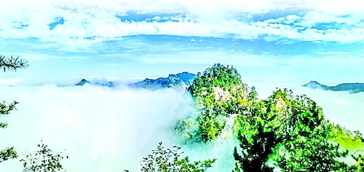 然而,天水石門山的饋贈還不止這些。由于石門山地理位置特殊,宜人的氣候經(jīng)常會造就氣勢磅礴的浩瀚云海。云海平靜時,云霧便在半山腰停住腳步。站在山巔遠(yuǎn)眺,只見腳底下半山腰白霧團(tuán)團(tuán),感覺自己在云山之巔,飄飄欲仙。“不知天上宮闕,今夕是何年?”此情此景,比畫更有靈氣,比詩更具意境。置身其中,感覺空氣都被浸潤得芳香四溢,令人心曠神怡。