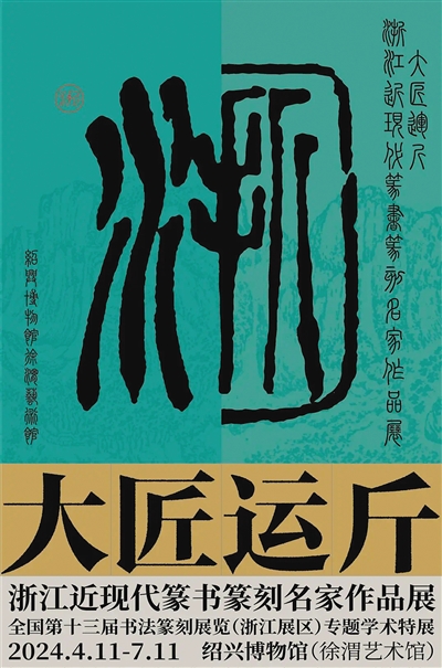 浙江省紹興博物館“大匠運(yùn)斤——浙江近現(xiàn)代篆書(shū)篆刻名家作品展”海報(bào)。