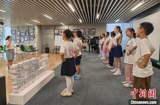 寧波圖書(shū)館的“天一童藝”公益項(xiàng)目現(xiàn)場(chǎng),孩子們跟著老師學(xué)唱由《千字文》改編的歌曲?!≈行戮W(wǎng)記者 應(yīng)妮 攝