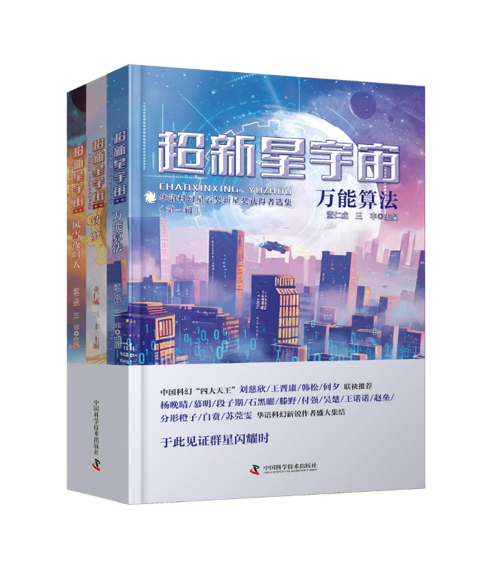 《超新星宇宙》由著名科普科幻作家董仁威、著名科幻學(xué)者三豐主編,第一輯分為《萬能算法》《鑄夢》《風(fēng)雪夜歸人》共三冊,收錄了榮獲第十、十一、十二屆華語科幻星云獎2016-2020年度新星獎獲得者楊晚晴、慕明、段子期、石黑曜、滕野、付強(qiáng)、吳楚、王諾諾、趙壘、分形橙子、白賁、蘇莞雯等12名新銳作者的18篇作品。
