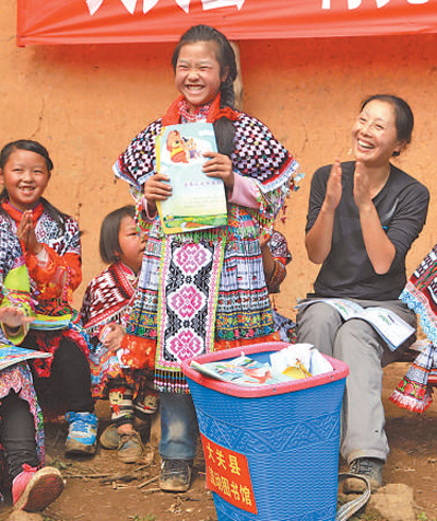 常紹慧和同事們?cè)谧咴L時(shí)了解到:村子海拔1500米以上,居住著50多戶人家,村民只能在地勢(shì)稍緩的地方種些玉米、土豆,收下的糧食,需要背著背簍步行到鎮(zhèn)上集市去賣(mài);因?yàn)榇遄硬煌ü?、沒(méi)有學(xué)校,村里的孩子們要走到5公里外的學(xué)校去上學(xué)。常紹慧想,能為這里做些什么呢?她和同事一合計(jì),想出一個(gè)方案:“咱們圖書(shū)館有很多書(shū)呀,可以幫何家坡建一個(gè)‘流動(dòng)圖書(shū)館’!”