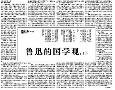 2007年5月31日《光明日報(bào)》國學(xué)版文章《魯迅的國學(xué)觀(上)》
