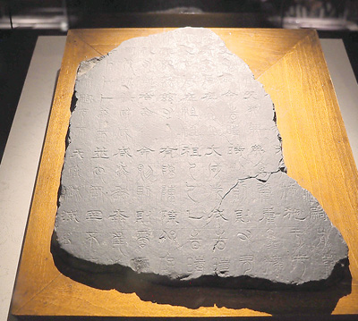 一塊三國時(shí)期的正始石經(jīng)殘片上,古文、小篆、隸書三體呈“品”字形排列,與其他石經(jīng)三體直下排列的形式不同,體現(xiàn)了正始石經(jīng)刻銘形式的多樣性。此石為《尚書·臯陶謨》殘篇,存“言”“帝”等字。據(jù)悉,目前所見這一形式的正始石經(jīng)僅有《尚書》之《堯典》與《臯陶謨》兩篇。