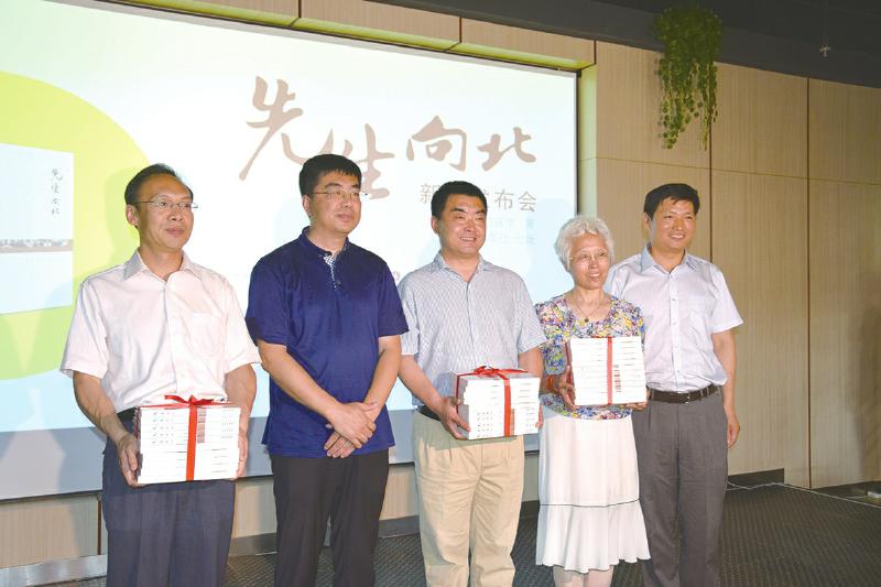 在《先生向北》新書發(fā)布會上,長春出版社向吉林大學(xué)檔案館和讀者代表贈書。 長春出版社 供圖