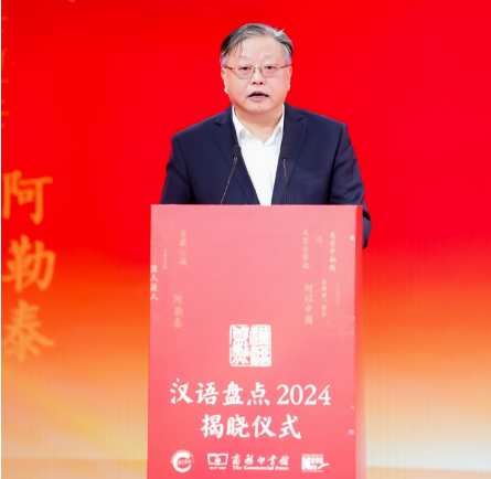 商務(wù)印書(shū)館黨委書(shū)記、執(zhí)行董事顧青在“漢語(yǔ)盤點(diǎn)2024”年度字詞揭曉儀式上致辭。新華網(wǎng) 發(fā)