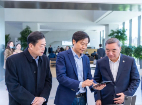 張宇偉(左一)和宋志平(右一)一起到小米集團調研。