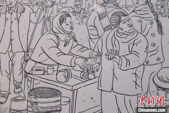 蘭州鋼筆畫愛好者手繪系列“臘月圖”,記錄“集市文化”,留住“年味”以感悟鄉(xiāng)愁?!¢Z姣 攝