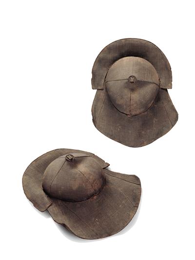 穿衣著冠,從來衣冠并稱,甘肅漳縣元代汪世顯家族墓中除了錦羅袍衫等衣物外,更值得一提的便是兩頂帽子了。這兩頂帽子一頂是前加沿笠帽,一頂是鑲寶石鈸笠帽。與那兩件衣袍不同,這兩頂帽子可都是元代蒙古族特色的帽冠。