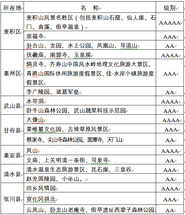 天水市恢復(fù)開(kāi)放的國(guó)家A級(jí)旅游景區(qū)名單