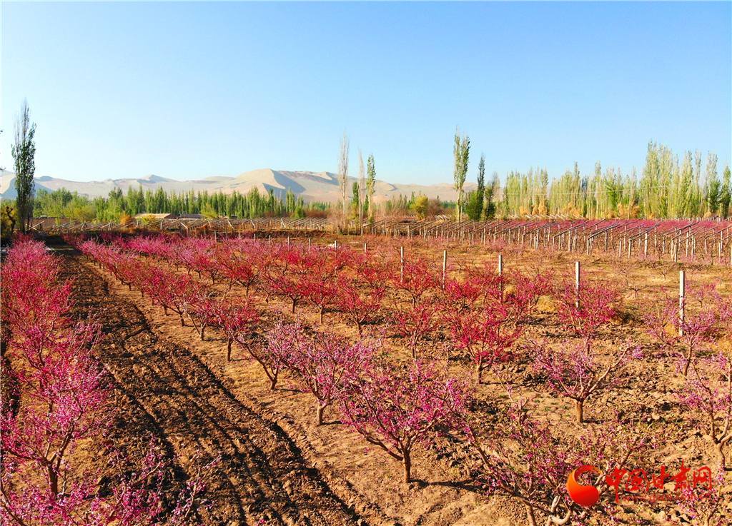 近日,位于鳴沙山下的甘肅省敦煌市七里鎮(zhèn)的5000余畝桃花競相綻放,芬芳爭艷,分外迷人。目前,桃產(chǎn)業(yè)已成為該鎮(zhèn)富民強鎮(zhèn)的主導(dǎo)產(chǎn)業(yè)之一。