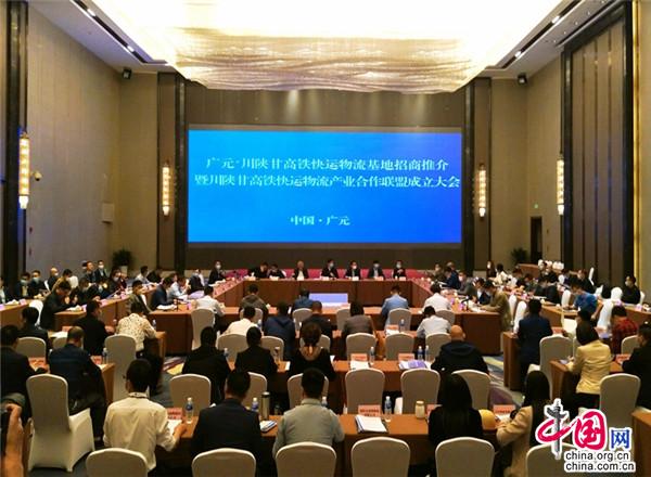 當(dāng)日開工儀式后結(jié)束后,還舉行了廣元·川陜甘高鐵快運物流基地招商推介暨川陜甘高鐵快運物流產(chǎn)業(yè)合作聯(lián)盟成立大會。該聯(lián)盟由54家高鐵快運物流相關(guān)單位自發(fā)成立,將以高鐵快運物流基地為核心,搭建鐵路高鐵快運、生產(chǎn)制造、商貿(mào)流通、社會物流企業(yè)合作平臺,通過物流組織方式創(chuàng)新,實現(xiàn)供應(yīng)鏈降本增效,讓各方收益;同時實現(xiàn)資源對接,優(yōu)勢互補,共同推動廣元高鐵快運物流基地高效建設(shè)運營,推動川陜甘地區(qū)物流業(yè)提檔升級,進一步支持區(qū)域生產(chǎn)制造和商貿(mào)流通高質(zhì)量發(fā)展。