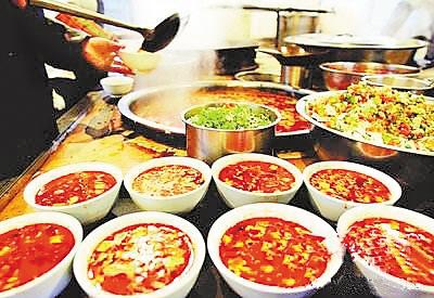 在晾面的時候,主婦開始炒菜,做湯頭。做菜前,先要熟些新鮮的油潑辣子,在辣面中調入少許精鹽與調和粉,將熱好的胡麻油“嗞拉”一聲傾入辣子面中,香辣之味頓時充滿一室。然后開始燴菜做湯頭。只見主婦有條不紊地將切好的菜丁逐一擱進油鍋里,反復翻炒,適時放入大香、桂皮、草果、生姜、花椒等制成的混合調料與精鹽,等香味炒出來了,便漩入提前燒好的開水,火關小,讓其慢熟。