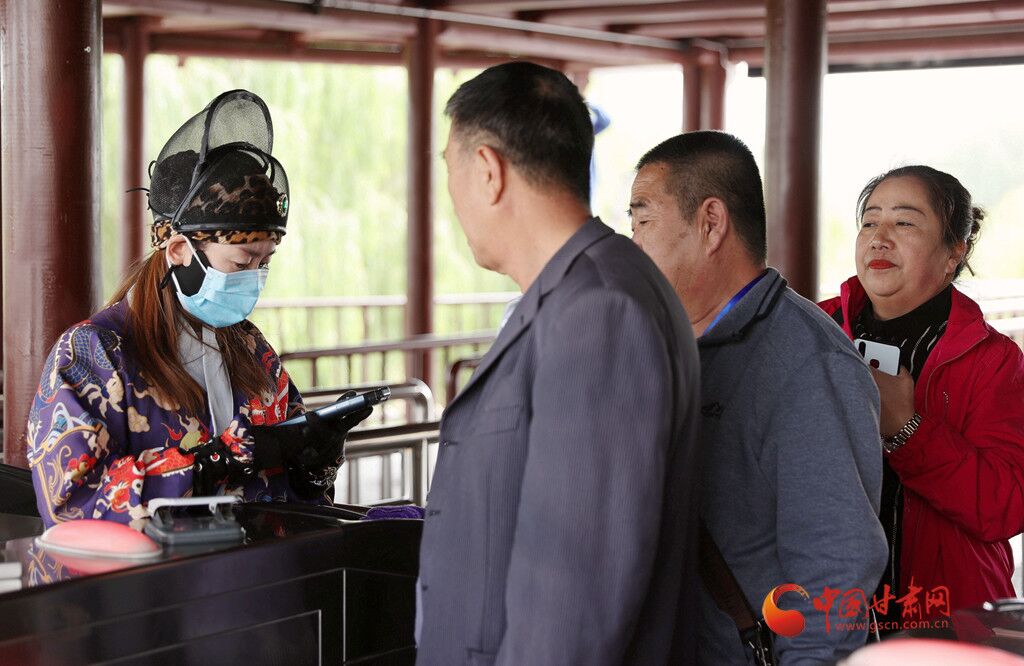 講解員帶領(lǐng)游客體驗嘉峪關(guān)關(guān)城
