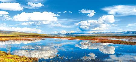 如果你來到這里,可飽覽遠處草原的天空深邃如井,云如裙裾;鑲嵌于草原之中的湖水像一面明凈的鏡子,倒映著藍色的天,白色的云;近處的湖面上,鳥飛魚躍等,這些美景定會讓你流連忘返。