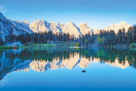 達爾宗湖四周松柏參天,灌木叢生,湖邊延伸著翠綠如毯的青草地。整個湖面呈不規(guī)則的葫蘆形,湖水深不可測。它時而碧波蕩漾,時而平靜如鏡,宛如嫻靜溫柔的少女。