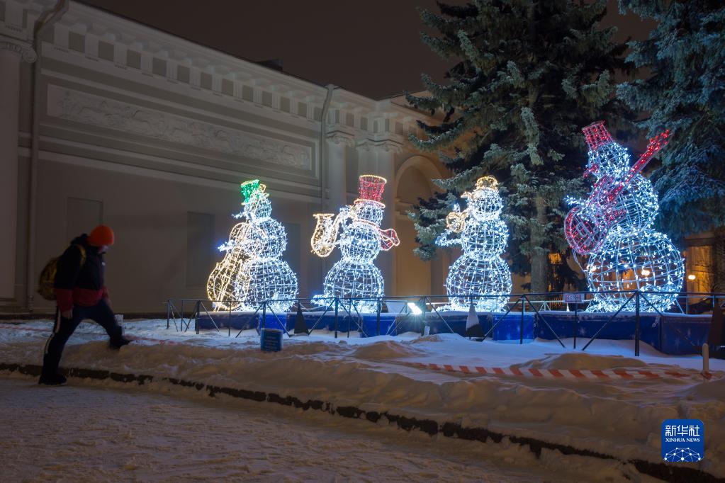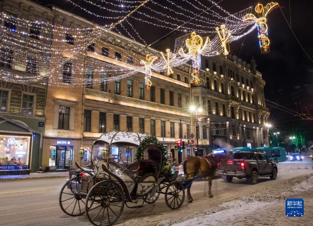新年即將到來,俄羅斯圣彼得堡街頭點亮各色燈飾,營造節(jié)日氣氛。