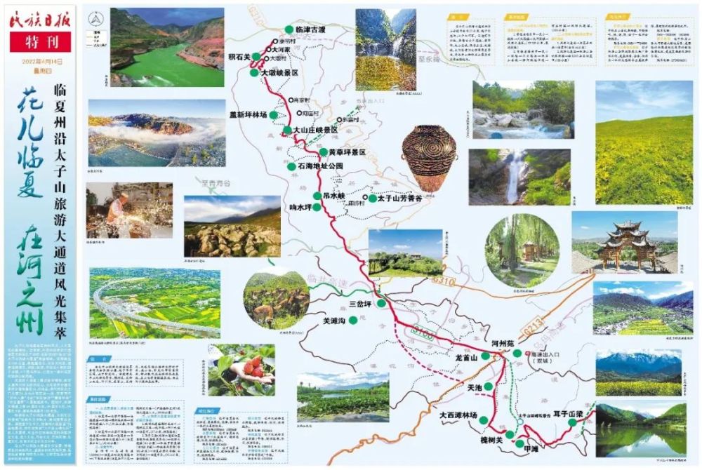 太子山沿線是臨夏自然風(fēng)光、人文景觀的集萃地。近年來,州委州政府在打造臨夏文旅百億產(chǎn)業(yè)時,創(chuàng)新性地打造出“沿太子山旅游大通道”黃金線路。該線路全長286公里,南起蓮花山、北至大河家,涵蓋沿線康樂、和政、臨夏、積石山4縣的28 個鄉(xiāng)鎮(zhèn)、4個國有林場,已成為一條環(huán)臨夏州旅游公路網(wǎng)線。