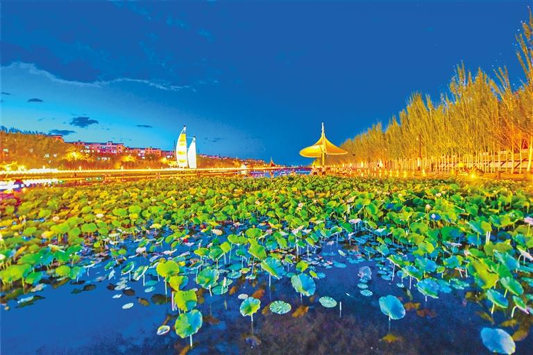 敦煌大漠荷花盛開。奔流新聞·蘭州晨報(bào)通訊員 王斌銀 攝