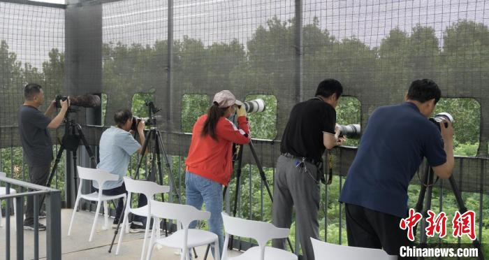 圖為鳥類攝影愛(ài)好者在觀鳥平臺(tái)上進(jìn)行拍攝?!∩G锶A 攝