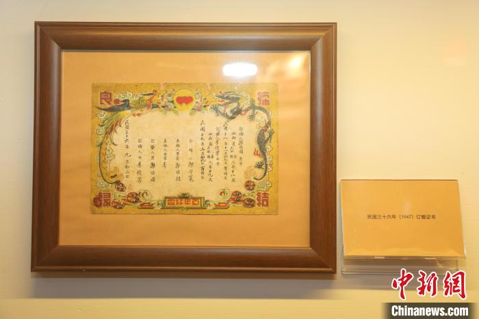 圖為博物館展出的民國時期的訂婚證書?!⒘?nbsp;攝
