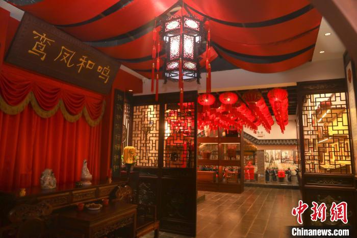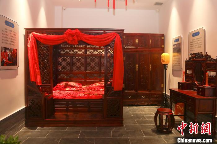 圖為博物館內(nèi)布置的中式傳統(tǒng)風格新婚洞房。 劉力鑫 攝