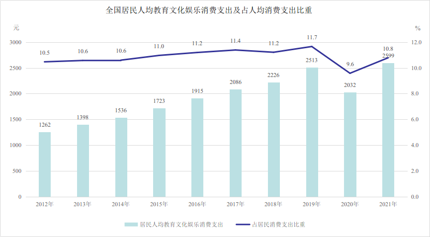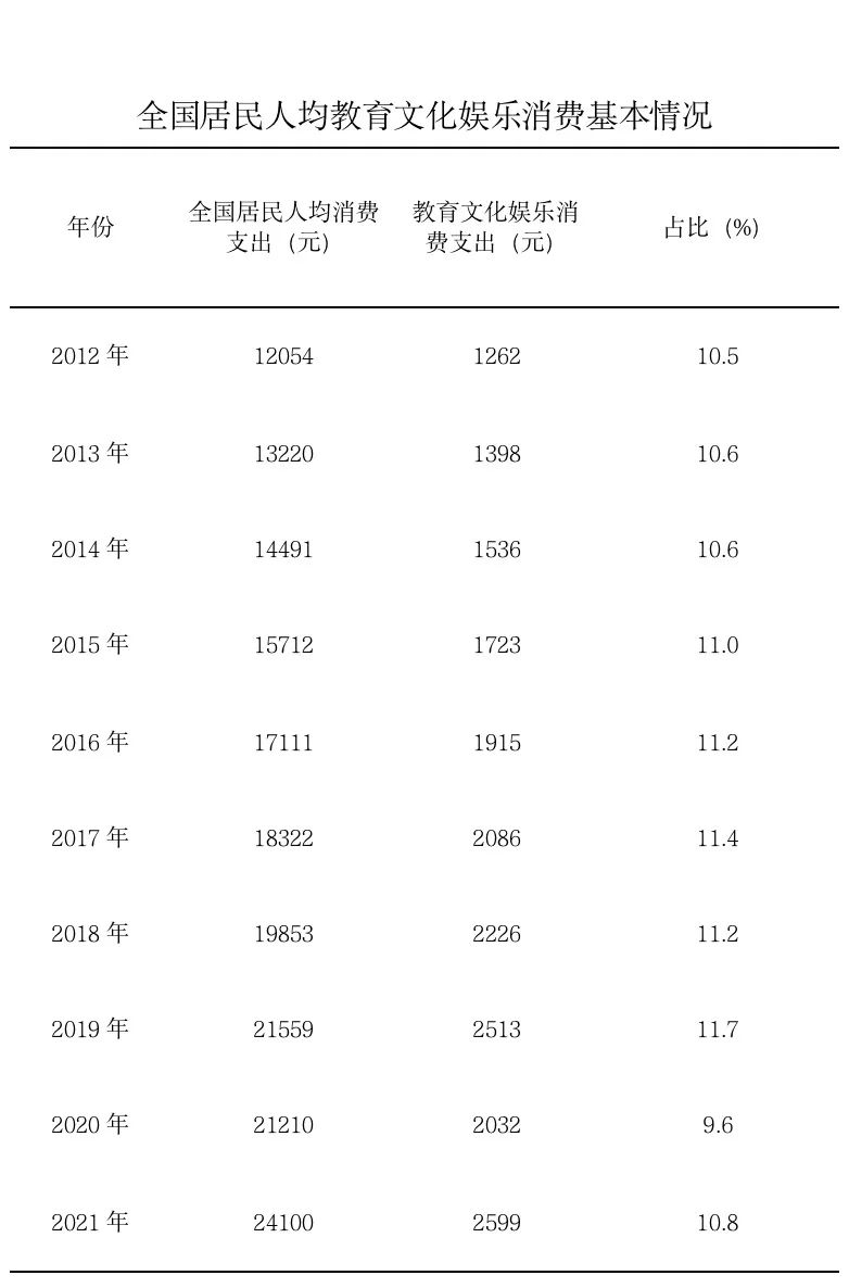 記者從文化和旅游部獲悉,十年來,文化產(chǎn)品和服務(wù)供給不斷豐富,促進(jìn)文化和旅游消費取得顯著成效。2021年,全國居民人均教育文化娛樂支出2599元,較2012年增長105.9%。