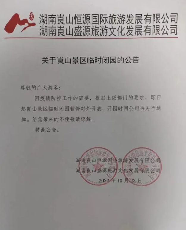 湖南:崀山旅游區(qū)宣布臨時(shí)閉園 暫停對(duì)外開(kāi)放