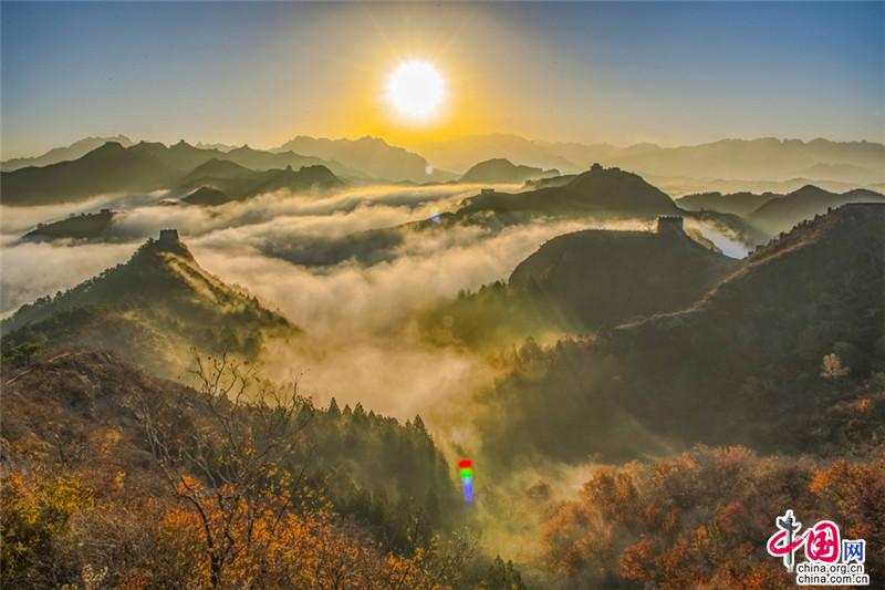 原標題:晚秋中的金山嶺長城 云海日出彩葉羨煞人