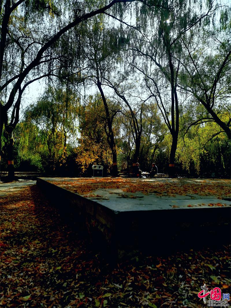 秋天是北京最治愈的季節(jié),滿地黃葉鋪就而成的地毯,是短暫又美麗的專屬浪漫。而圓明園之美,則有寂寞之感、孤獨之感。
