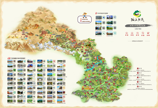 ——鄉(xiāng)村旅游。甘肅旅游,70%以上的旅游資源集中在農(nóng)村。近年來(lái),全省文旅系統(tǒng)累計(jì)投資12億元,共打造省級(jí)鄉(xiāng)村旅游示范村310個(gè),創(chuàng)建鄉(xiāng)村旅游示范縣14個(gè),文旅振興鄉(xiāng)村樣板村120個(gè),培育鄉(xiāng)村旅游合作社470個(gè),38個(gè)村入選建全國(guó)鄉(xiāng)村旅游重點(diǎn)村,3個(gè)鄉(xiāng)鎮(zhèn)入選全國(guó)首批鄉(xiāng)村旅游重點(diǎn)鄉(xiāng)鎮(zhèn)、6個(gè)村入選第三批全國(guó)鄉(xiāng)村旅游重點(diǎn)村名錄,2家民宿創(chuàng)建為首批全國(guó)甲級(jí)旅游民宿。美麗鄉(xiāng)村及特色民宿已成為省內(nèi)外游客停留和消費(fèi)的首選地,甘南扎尕那村、隴南花橋村、慶陽(yáng)天富億村、天水孫集村、平?jīng)鲽P凰村、臨夏大川村等一大批示范村已成為省內(nèi)外游客的熱門(mén)打卡地,美麗鄉(xiāng)村正在成為全省綠色經(jīng)濟(jì)的新型引擎。其中,2019年,甘肅鄉(xiāng)村旅游接待游客5918萬(wàn)人,收入175億元,鄉(xiāng)村旅游占到全省文化旅游半壁江山,讓老百姓身邊青山綠水真正成了“金山銀山”。2020年全國(guó)鄉(xiāng)村旅游及民宿工作現(xiàn)場(chǎng)會(huì)、“一帶一路”美麗鄉(xiāng)村國(guó)際論壇在甘肅舉辦,甘肅鄉(xiāng)村旅游一枝獨(dú)秀、異軍突起,受到社會(huì)各界高度贊揚(yáng)和廣泛關(guān)注。2021年,甘肅鄉(xiāng)村旅游游客接待量達(dá)1.31億人次,實(shí)現(xiàn)鄉(xiāng)村旅游收入390.33億元,分別恢復(fù)至疫情前的103.20%和114.80%,顯著高于國(guó)內(nèi)旅游的整體恢復(fù)比例。值得一提的是,全省文旅系統(tǒng)在大力發(fā)展鄉(xiāng)村旅游的同時(shí),堅(jiān)持把非遺工坊建設(shè)也作為重中之重,積極創(chuàng)新探索“非遺+扶貧”模式,打造融入當(dāng)代審美的非遺品牌,搭建扶貧產(chǎn)品通往市場(chǎng)的平臺(tái),全省累計(jì)建成非遺扶貧就業(yè)工坊106家,共有11家非遺工坊納入全國(guó)消費(fèi)扶貧產(chǎn)品目錄和數(shù)據(jù)庫(kù),認(rèn)定省級(jí)以上非遺就業(yè)工坊93家,涉及各級(jí)傳統(tǒng)技藝類非遺代表性項(xiàng)目77項(xiàng),分布在全省11個(gè)市州46個(gè)脫貧縣區(qū),吸納就業(yè)6000多人;年均組織開(kāi)展“非遺過(guò)大年、文化進(jìn)萬(wàn)家”民俗展演活動(dòng)1000多場(chǎng)次,極大豐富了廣大群眾精神文化生活。