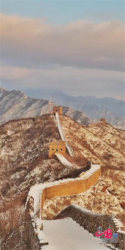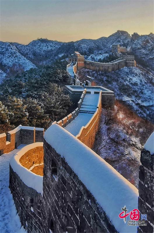 【點睛】突然飄雪的金山嶺長城,哪怕只是登臨一小段,也足以讓人們心頭震顫!長城鑄就的萬古雄風,“不到長城非好漢”的夙愿你實現了嗎?