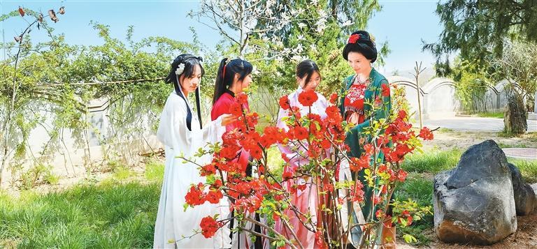 中國甘肅網(wǎng)4月10日訊 據(jù)蘭州晨報報道(奔流新聞·蘭州晨報記者王蘭芳)“百花錦繡,龍城花朝。”4月9日下午,由天水市玉泉觀大景區(qū)服務(wù)中心、天水市博物館、甘肅公航旅天水名城公司主辦的天水市第二屆漢服“花朝節(jié)”盛大啟幕。來自天水市的數(shù)百名漢服愛好者身著各色漢服,或云鬢斜簪輕拂團扇,或衣帶飄飄款款而來。那一刻,煙火人間與國潮美學(xué)完美融合,“同袍”們盛裝打扮,共同歡慶“花朝節(jié)”。
