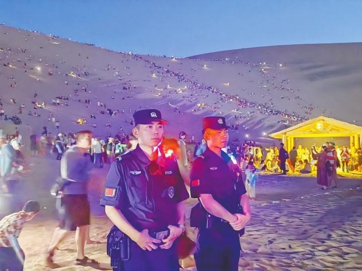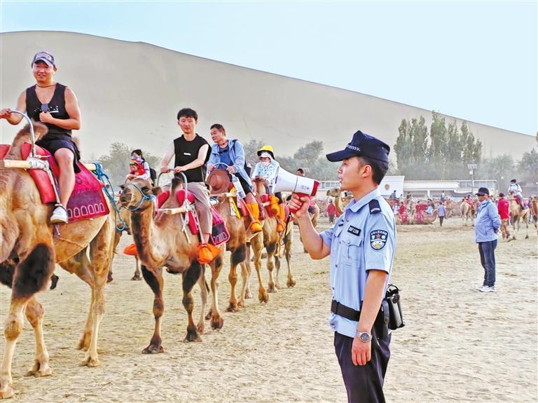 面對隨之而來的社會治安防控壓力,敦煌公安立足旅游特色,結(jié)合夏季治安打擊整治行動,精準(zhǔn)布警、精細管控、精致服務(wù),時刻踐行“民警就是導(dǎo)游,隊伍就是風(fēng)景,管理就是服務(wù),執(zhí)法就是守護”的敦煌旅游警務(wù)理念,用“5A”警務(wù)服務(wù)“5A”景區(qū)。