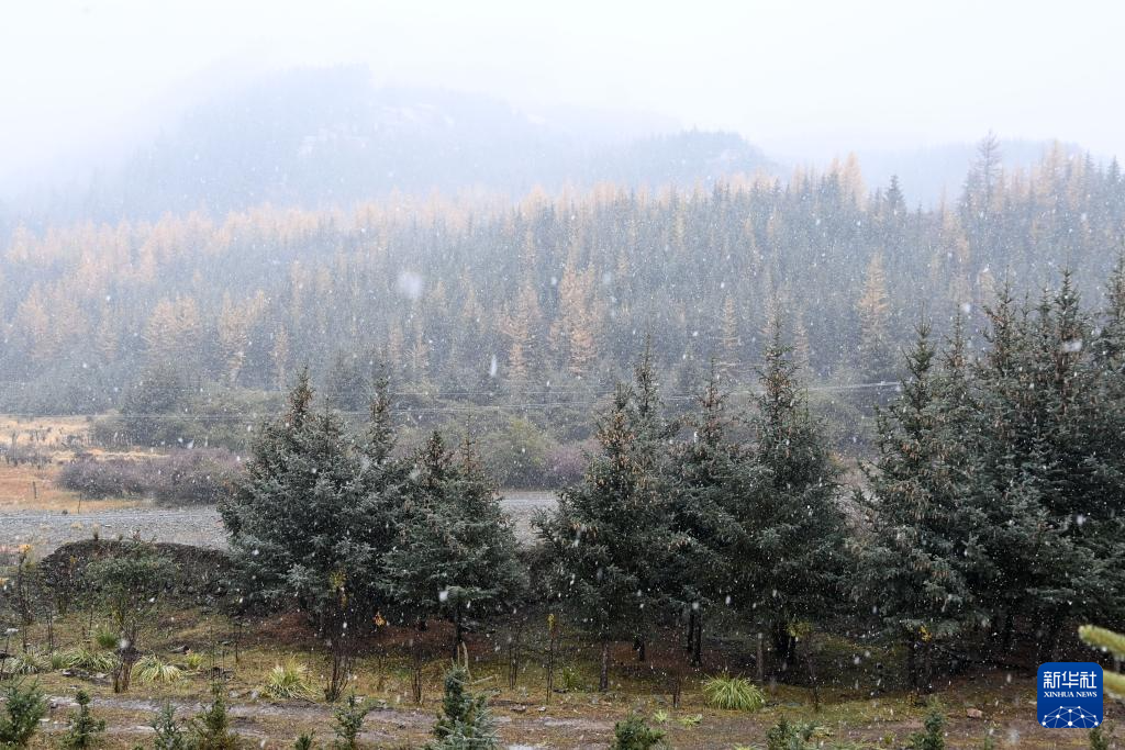 金秋時節(jié),甘肅省張掖市肅南裕固族自治縣境內(nèi)的祁連山脈迎來一場降雪,云杉翠柏與皚皚白雪相映成趣,美不勝收。