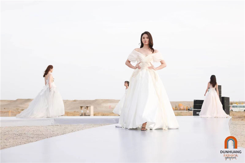 2023敦煌國(guó)際時(shí)尚周以一場(chǎng)在玉門關(guān)前的時(shí)尚走秀拉開(kāi)帷幕。著名時(shí)尚藝術(shù)家、服裝設(shè)計(jì)大師張肇達(dá)攜手頂級(jí)婚紗品牌馬克·蝶麗奧娜帶來(lái)了60套婚紗禮服首次亮相。