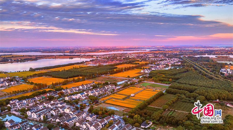 傍晚時分抵達(dá)香村,收獲了一場驚艷的落日美景,云層色彩在光線折射下不斷變化,忽而紅如火,忽而燦如金,忽而粉如煙,再到最后一抹落日的余暉撒遍整個村莊,稻田村舍,樹木小花,一切都籠罩在一片祥瑞的金光里,如夢似幻……這應(yīng)是我見到過的最美江南晚霞。