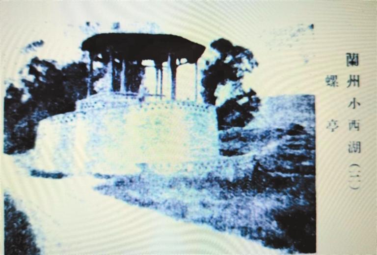 薛桂輪《西北視察日記》一書中寫道,當(dāng)時的小西湖,周廣二百余畝,猶存龍王廟、東西院、宛在亭、螺亭、四明亭等建筑。“東西院建筑頗為幽雅,西院穿墻題名晚紅院,背題醉流霞,內(nèi)有盟鷗館、夢魚齋、惠風(fēng)軒,各懸聯(lián)語。東院穿墻題名早紅院,背題挹爽氣,內(nèi)有藕香館、思鱸齋、嘉魚軒,亦各懸對聯(lián)。”“螺亭位于園之北墻,下臨黃河,盤旋而上。不但全園風(fēng)景了如指掌,即蘭州山水亦歷歷在目。”作者游園之余,還在小西湖制高點螺亭“於此攝全園活動影片并園外黃河風(fēng)景”。