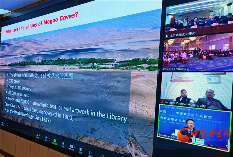 中國(guó)甘肅網(wǎng)12月4日訊(西北角·中國(guó)甘肅網(wǎng)記者 宋芳科 )12月4日,“敦煌文化環(huán)球連線——走進(jìn)尼泊爾”在蘭州、敦煌、尼泊爾三地線上線下同步舉辦。中國(guó)駐尼泊爾大使陳松、尼泊爾教育與科技部部秘普拉米拉·黛維·巴吉拉恰利亞,酒泉市委常委、敦煌市委書(shū)記石琳、尼泊爾藍(lán)毗尼文化市市長(zhǎng)薩魯丁·穆薩爾曼等應(yīng)邀出席活動(dòng)并講話,活動(dòng)由甘肅省政府外事辦主任張寶軍主持。