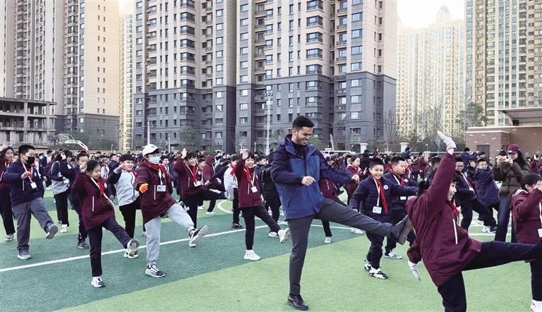 安安和學(xué)生們一起做操