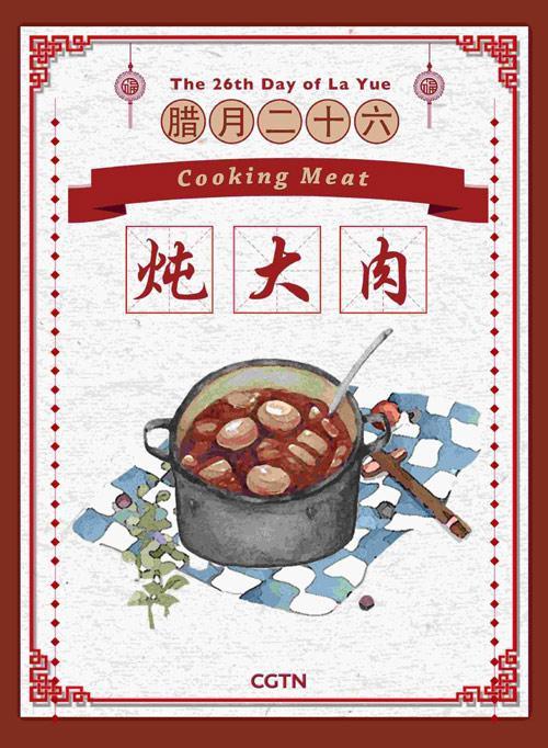 臘月二十六這天,許多家庭通常都會燉豬肉和吃豬肉。不養(yǎng)豬的家庭會去當地集市買一大塊肉。在過去的農業(yè)社會,人們只有在春節(jié)才能吃上肉。吃肉也代表著一年中最盛大的慶?;顒印?/p>