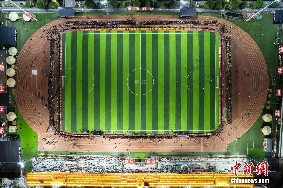 圖為1月18日晚,航拍2024年貴州“村超”預(yù)選賽現(xiàn)場(chǎng)。(資料圖)唐哲 攝