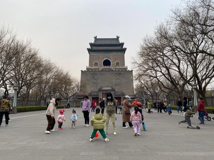 圖為市民在北京鐘鼓樓廣場(chǎng)游玩。中新社記者 陳杭 攝