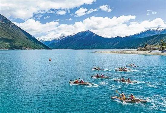4月20日,2024年巴松措國(guó)際漂流公開(kāi)賽的選手在比賽中。 新華社記者 孫非攝