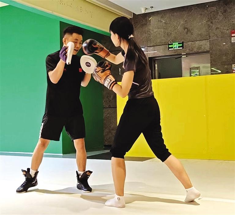 在實習之余,李王嘉楹報了一個自由搏擊課程來調(diào)劑生活。“學習防身術還能強身健體。”李王嘉楹說,在訓練過程中,跟著教練一步一步訓練,揮拳的那一刻,可以把所有的情緒都發(fā)泄出來,一場下來身心放松。話語中洋溢著自我提升的渴望和對未來的憧憬。