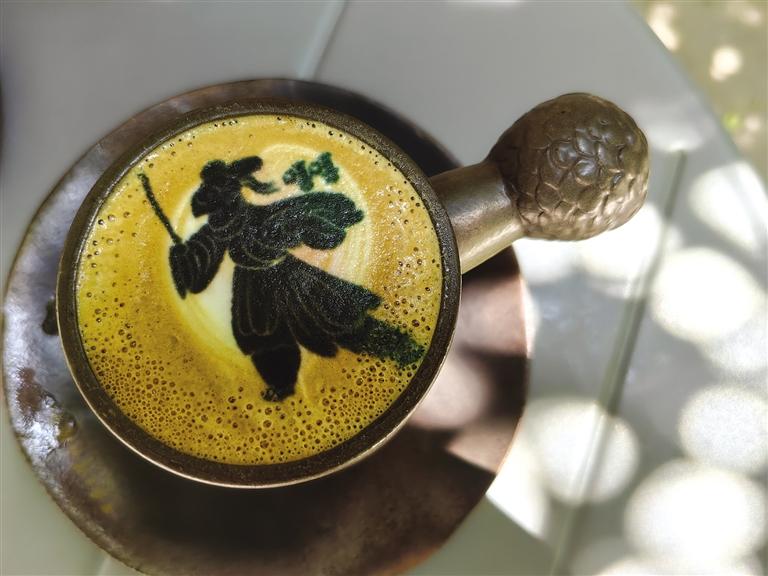 中國甘肅網(wǎng)7月23日訊 據(jù)蘭州晚報報道(記者 高宏梅 文/圖)端起一杯咖啡,甘肅省博物館館藏文物銅奔馬微縮圖案漂浮在咖啡之上,精致、唯美;來不及品嘗,省博物館的鷹頭形青銅權(quán)杖首搖身一變,已成為咖啡杯的陶瓷手柄,那厚重、那歷史感,絕對震撼。這,是甘肅省博物館藝術(shù)生活館(以下簡稱藝術(shù)生活館)的“文物咖啡”。