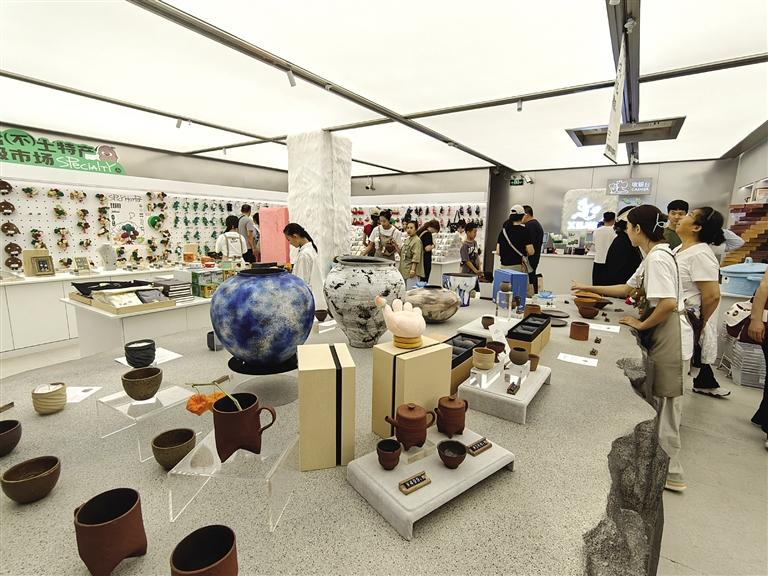 徐丹告訴記者,自6月19日藝術(shù)生活館開館以來,每天的客流量都在3000人至5000人上下,因為顧客太多,運營時長由原本的早8點到晚8點,延長到早8點至晚10點,她和團隊累并快樂著。
