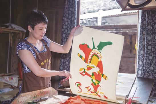 一日為師,終身為父。鐘海仙技藝好、人品好,對家人有擔(dān)當(dāng),對尹冬香也非常關(guān)心,傾囊相授。因為年畫在冬天印刷,下半年才有事做,上半年尹冬香就去其他作坊打工,一邊糊口,一邊學(xué)習(xí)掌握灘頭紙文化的其他技藝。尹冬香善學(xué)肯做,很受歡迎,下半年師父來領(lǐng)人時,對方總是不愿放人,為此還得罪了一些作坊。后來,尹冬香一去上工就講好,到了冬天必須要跟師父回去印年畫,大家也就不怪了。
