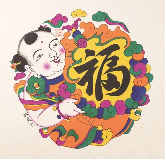 福美祥年畫作坊的新版年畫《福祿壽禧》之《?!?/p>